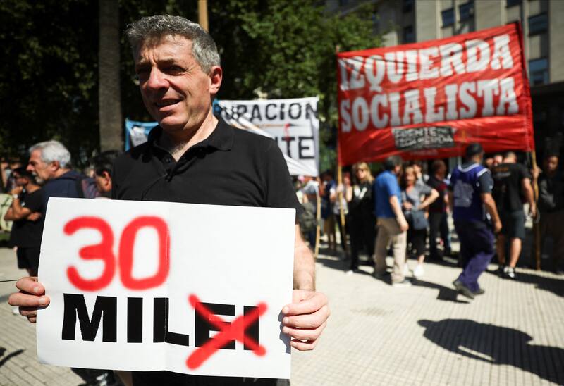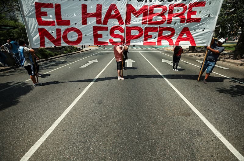 La marcha piquetera, programada para la tarde de este miércoles, se enmarca en el duro plan de ajuste económico impulsado por el gobierno libertario de Milei, que enfrenta una inflación interanual que llegó al 160%, pero que, según sus detractores, golpeará principalmente a la clase media y baja en vez de a la “casta política”, como prometió en campaña.