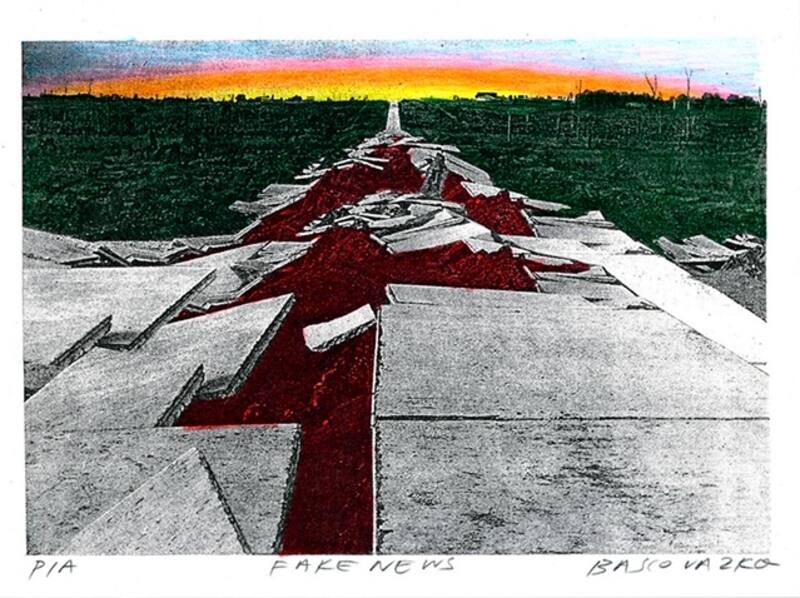 Fueron 13 de esas imágenes intervenidas las que Vazko expuso para la 13a Bienal de Artes Mediales realizada en 2017 en el Museo Nacional de Bellas Artes. Cada una de las fotografías fue fotocopiada e intervenida con la técnica del collage. La idea era exagerar el nivel de destrucción que podía verse en las imágenes.
