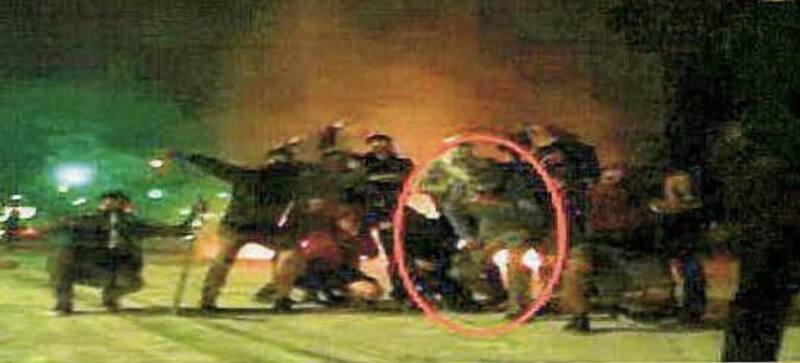 Y encontraron un video que mostraba manifestaciones afuera de Pedrero, donde un grupo de personas hacía una fogata y “realizaban cánticos alusivos a Colo Colo”. Pero hubo una foto que llamó la atención de la PDI: “Fotografía número 3 obtenida del perfil público Garrablanca oficial, donde se ve a un sujeto vistiendo un pantalón tipo buzo deportivo color negro con tres franjas blancas en los costados, además de una polera deportiva color blanco con dos franjas de color negro en los costados, zapatillas color oscuro con una franja blanca al costado, cubriendo su rostro con un pasamontañas color negro y su cuello con una pañoleta negra con blanco, portando en sus manos un extintor activado, lanzando su contenido a la vía pública”.