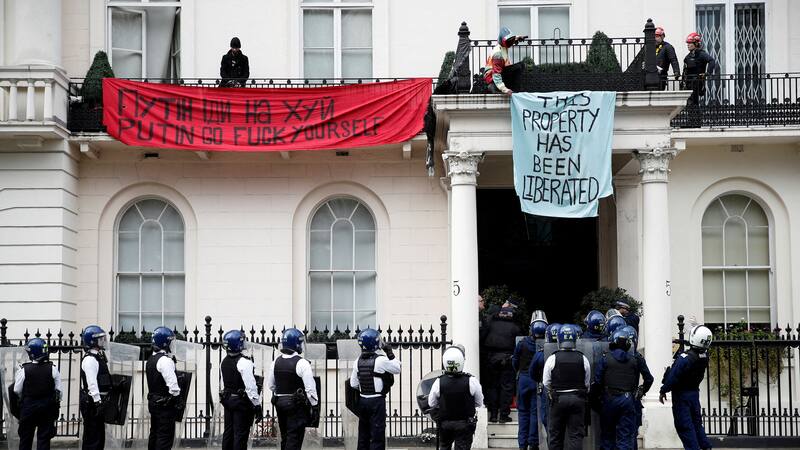 Propiedades de oligarcas rusos en Europa en la mira de los activistas: se toman mansiones en Londres y Biarritz