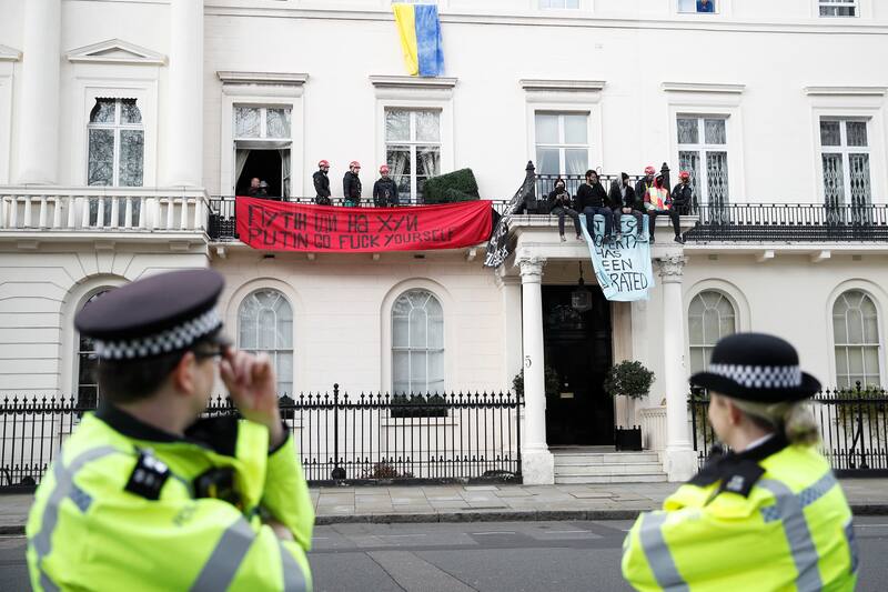 Un grupo se tomó la casa de Oleg Deripaska en el centro de la capital británica. Propiedad de un exyerno de Vladimir Putin en Francia corrió igual suerte.