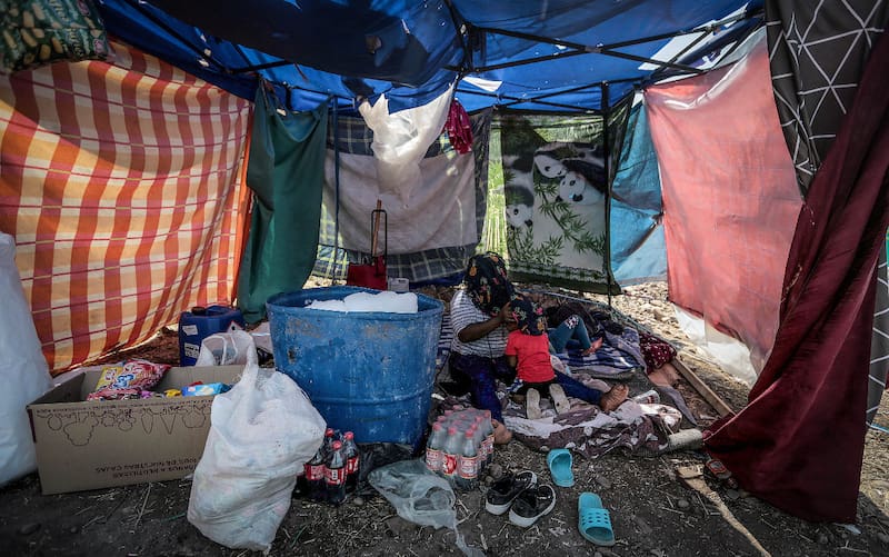 Las personas se han agrupados de distintas formas. Aunque las nacionalidades son varias, el país de procedencia no es un factor determinante; sí lo es la forma de colaborar entre sí. Por ejemplo, en la improvisada cocina de Cinthya del Águila (31), ciudadana peruana, además de su familia comparten otros compatriotas y dos colombianos. Llegó el domingo junto a su pequeña hija, arrastrada por el hacinamiento y la falta de dinero para pagar un arriendo.