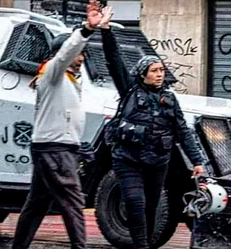 Denisse Andrea Cortés Saavedra (43), estudiante de tercer año de la carrera de Derecho de la Universidad Academia de Humanismo Cristiano, murió este lunes en el marco de una manifestación por la reivindicación de los pueblos originarios. Ese día Denisse levantó sus manos para acercarse a Carabineros, luego de que el carro lanzagua intentara dispersar a los manifestantes que con ponchos, trutrucas y kultrún venían del cerro Huelén (Santa Lucía) intentando llegar a Plaza Italia.