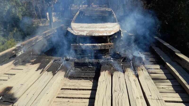 Algo similar se leyó en el lienzo que dejaron en el puente Tricauco, donde quemaron el auto que impidió el paso de la comitiva que trasladaba a la secretaria de EStado. “Izkia Siches, mientras existan presos políticos mapuches, no habrá diálogo. Por Kamilo (sic) Katrillanca y todos los caídos en combate. En Wallmapu no aceptaremos ningún soborno de Estado asesino”, decía.