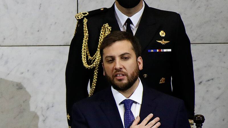 20 DE JULIO DE 2022/VALPARAISO El Presidente de la República, Gabriel Boric (i) y el diputado Raúl Soto (d), durante la ceremonia de Cuenta Pública 2022 de la Cámara de Diputados y el Senado, que se realiza en el Salón de Honor del Congreso Nacional. FOTO: LEONARDO RUBILAR CHANDIA/AGENCIAUNO Leonardo Rubilar