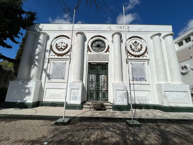Los daños al mausoleo institucional de Carabineros no solo fueron rayados. De hecho, del mausoleo fue robada la placa de mártires de la institución, la que minutos después logró ser recuperada por personal policial.