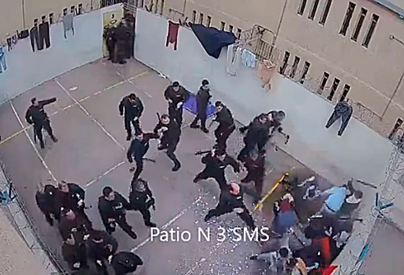 “Al apersonarme en la sección, se informó que había una situación de riesgo en los patios, por lo que el personal que acudió al llamado de apoyo, junto con el personal de trato directo nos agrupamos al exterior del patio N° 3, lugar en donde visualicé que había internos de otros patios agrupados en él, los cuales se encontraban provistos con fierros extraídos de las mesas de pimpón. Previo a la habilitación de la puerta de acceso al patio, en reiteradas ocasiones se solicitó a la totalidad de internos involucrados que depusieran su actuar, haciendo caso omiso a las instrucciones del personal, presentando en todo momento una actitud agresiva, amenazante y subversiva, arrojando objetos y lanzando golpes con elementos contundentes (metal) a través de la ventana de la puerta de acceso al patio, la cual habían destruido”, declaró, entre otros, un gendarme segundo.