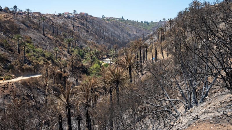 Los incendios forestales del pasado 2 de febrero en la Quinta Región no solo dejaron un saldo de 135 fallecidos y más de 8 mil viviendas dañadas, sino que también afectó cerca de 91,5 hectáreas de un total de 328 en total del Santuario de la Naturaleza Palmar El Salto, que destaca por sus ejemplares de palma chilena (Jubaea chilensis) y cuenta con la designación de monumento nacional.