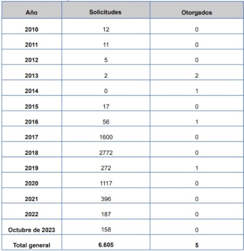 Respecto de las solicitudes realizadas durante los últimos años, desde el servicio manifestaron que desde 2010 a la fecha se han recibido 30.048 peticiones, de las cuales se ha otorgado la condición de refugiada a 815 personas. Cinco de ellos, como precisaron, son de nacionalidad cubana.