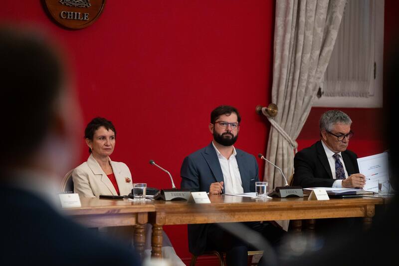 Luego de su pauta matinal, la ministra del Interior se fue al Palacio de La Moneda para liderar junto al Presidente Gabriel Boric el consejo de gabinete. Ahí se sentó al lado del Mandatario en el Salón Montt Varas y escuchó los casi 11 minutos de saludo inicial que hizo a sus secretarios de Estado.