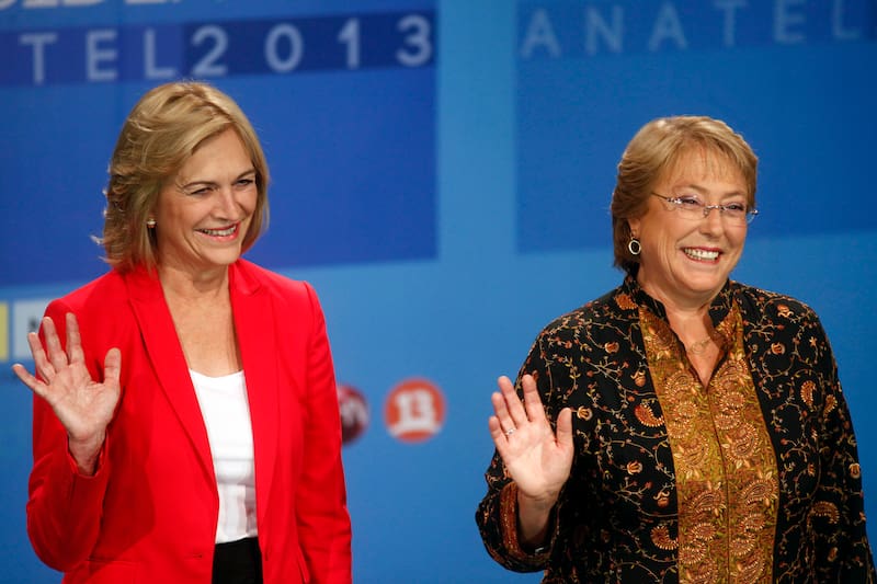 El 15 de diciembre de 2013 se realizó el primer balotaje en el que se enfrentaron dos candidatas: la expresidenta Bachelet (Nueva Mayoría) y la exministra -y hoy alcaldesa de Providencia-, Evelyn Matthei (Alianza). Llegaron a esa instancia dejando en el camino -en la primera vuelta- a Marco Enríquez-Ominami (PRO), Franco Parisi (Ind.), Marcel Claude (PH), Alfredo Sfeir (PEV), Roxana Miranda (Igual), Ricardo Israel y Tomás Jocelyn-Holt (Ind.)