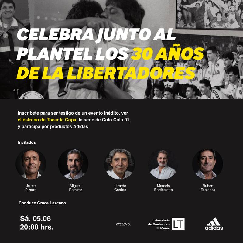 En este programa, que será transmitido a través de La Tercera, El Deportivo, La Cuarta y sus respectivas redes sociales, podrás acompañar a los cracks de Colo Colo 1991 —que de manera inédita se reunirán para la ocasión—, y también presenciar el primer capítulo de la serie Tocar la Copa, que ha sido preparada por el Laboratorio de Contenidos de Marca de La Tercera.