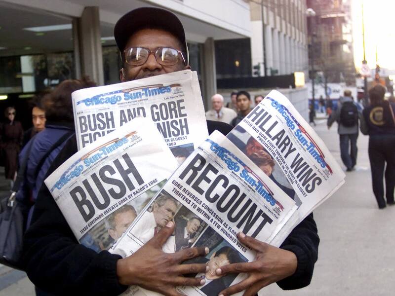 Too close to call (“Demasiado reñido para declarar”). Esa fue la frase que la noche del 7 de noviembre de 2000 llenó de incertidumbre a los estadounidenses tras las elecciones presidenciales de ese año entre Al Gore y George W. Bush. Ante un escaso margen de diferencia de votos en Florida, el estado que lo decidía todo, la elección terminó con la intervención de la Corte Suprema, que entregó la Casa Blanca a Bush (2001-2009) 36 días después de los polémicos comicios.