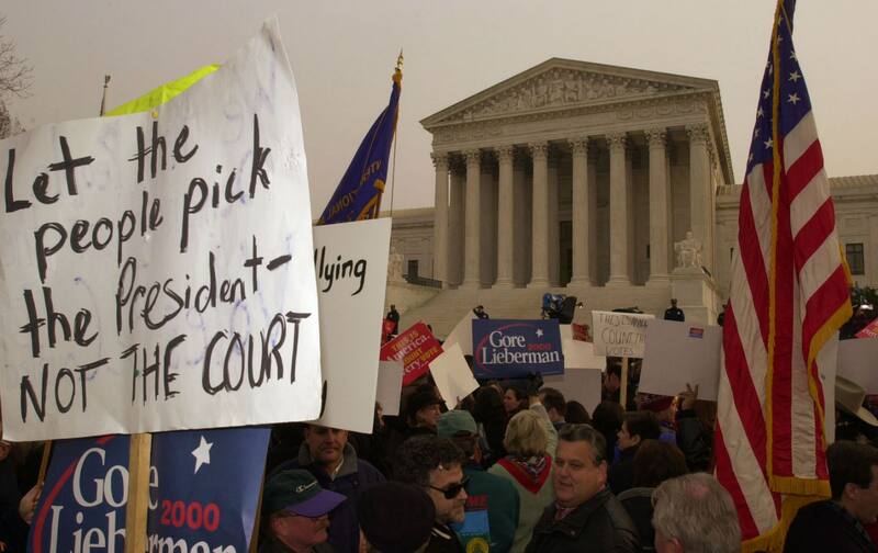 Los demócratas llevaron el caso a la Corte Suprema de Florida que falló a favor de que se completara el recuento manual, pero la campaña de Bush acudió a la Corte Suprema de EE.UU. y al día siguiente el máximo tribunal falló que los recuentos no podían completarse a tiempo de acuerdo a la ley del estado, dándole el triunfo a George W. Bush.
