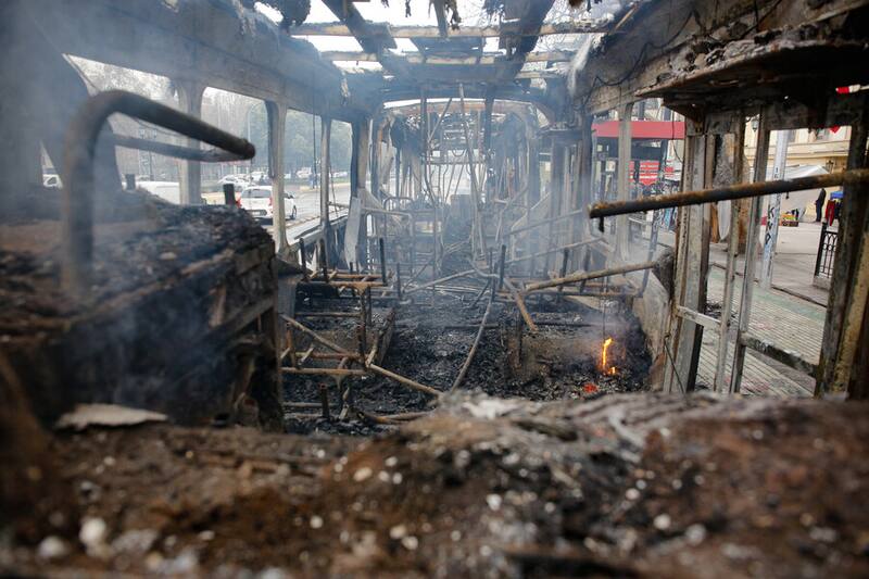 Así también hubo hechos sin alguna explicación lógica, como la quema del 31 de julio por parte de encapuchados en Estación Central cuando obligaron a bajar al chofer y los pasajeros, algo similar a lo ocurrido el 4 de agosto en la Alameda con Ecuador, cuando entre 10 y 15 encapuchados intimidaron al conductor y lo obligaron a bajar junto a unos 15 pasajeros, para luego incendiar el vehículo.