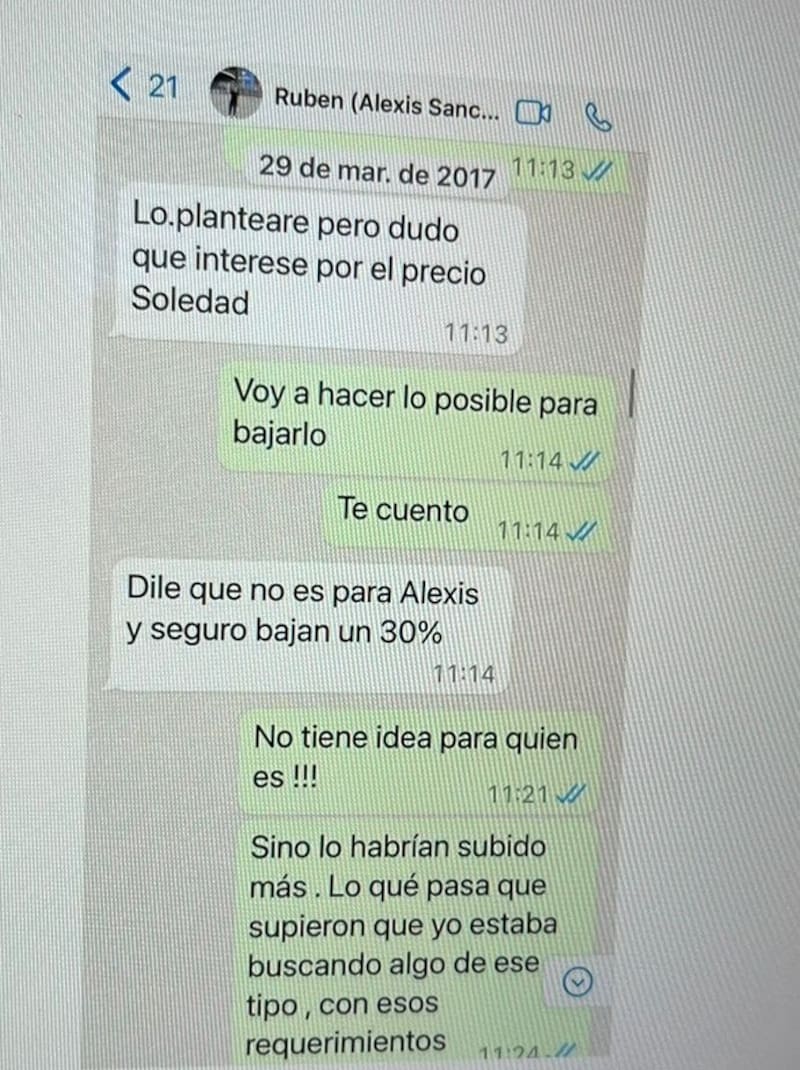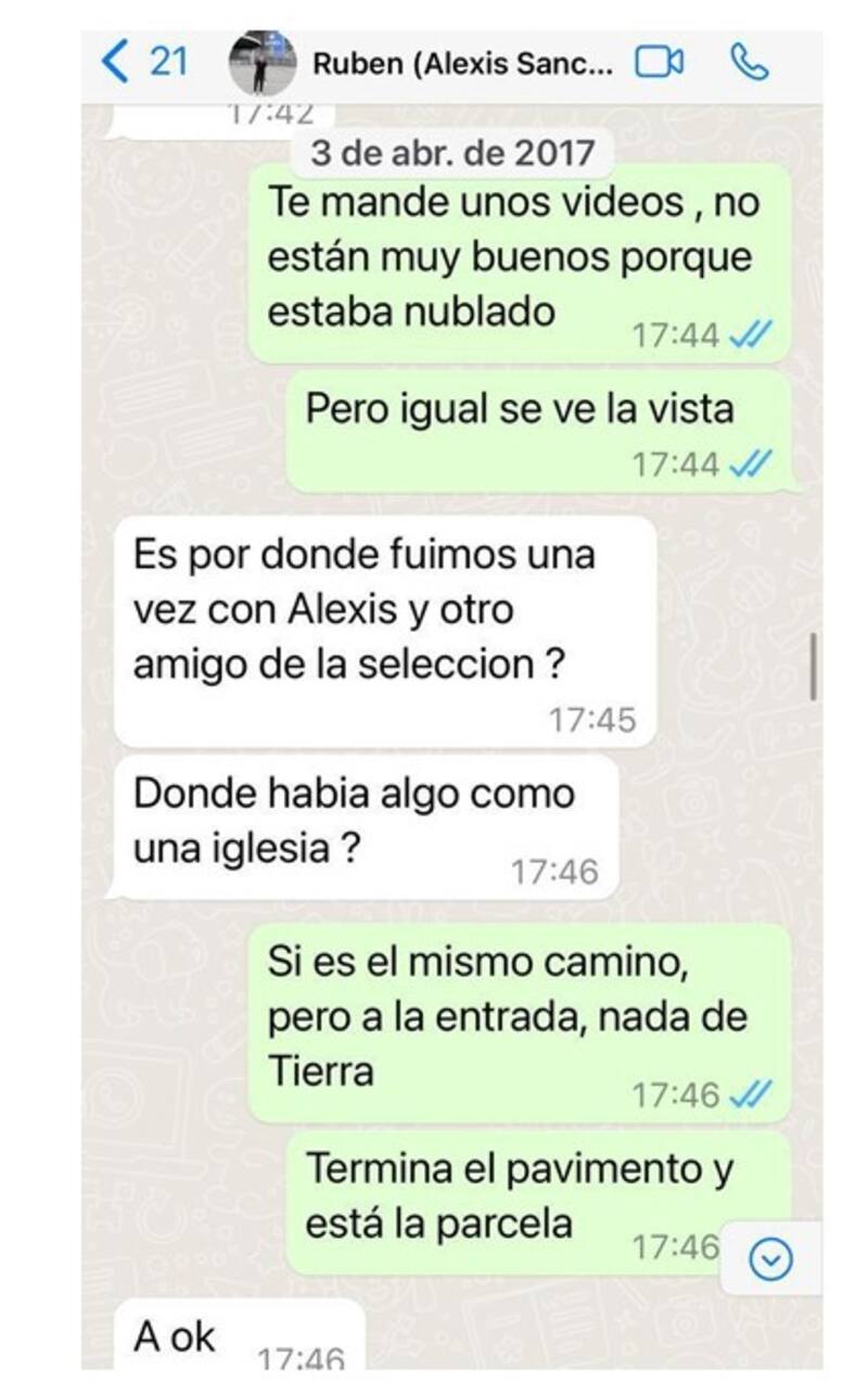 Hoy, las comunicaciones virtuales aportan luces, aunque la interpretación necesariamente depende de la parte involucrada. En las tratativas, de hecho, hubo los tradicionales ‘tira y afloja’, propio de una negociación de esta naturaleza. De hecho, Inostroza, abiertamente, pide una rebaja en el valor del predio. “Dile que no es para Alexis y seguro bajan un 30 por ciento”, se anima a sugerir.