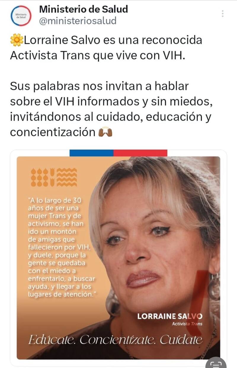 “Agradecemos el compromiso de la activista trans, Lorraine Salvo, en políticas de salud. Le ofrecemos disculpas por informar erróneamente en RRSS, que vive con VIH, cuando no es así. Esperamos seguir trabajando de manera conjunta por los derechos de las personas trans”.