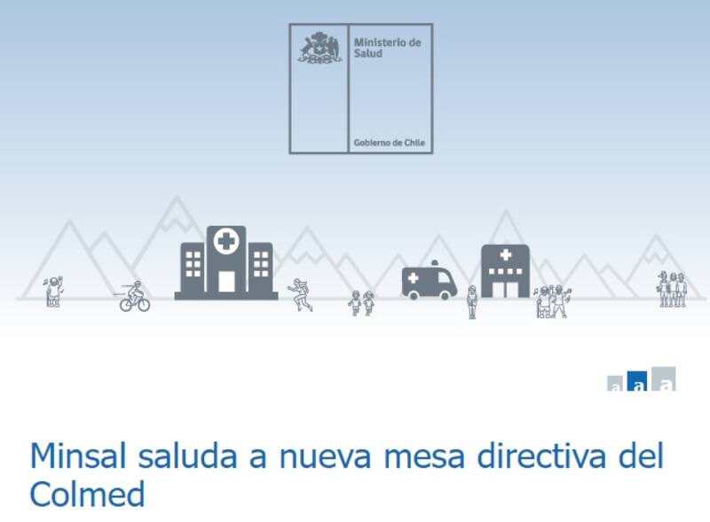 “El Ministerio de Salud y sus tres autoridades extienden un cordial saludo la nueva mesa directiva del Colegio Médico de Chile, encabezada por la doctora Anamaría Arriagada. Hace extensivos sus saludos a los consejeros nacionales y regionales. La importancia del Colegio Médico es indudable en el compromiso de la salud pública, la defensa de los derechos profesionales de la salud y su colaboración en la mejora del sistema sanitario. El Minsal envía sus más sinceros parabienes a quienes asumen el liderazgo de tan prestigiosa institución”.