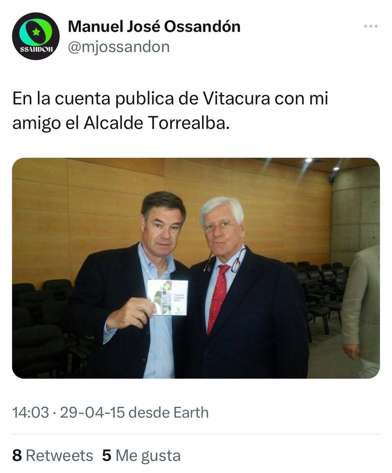 Recientemente, además, Ossandón ratificó su lealtad y empatía hacia él, y entrevista con Las Últimas Noticias indicó: “Debe estar pasando por una situación humana muy compleja. Es gente a la cual conozco y me imagino que debe estar sufriendo”.