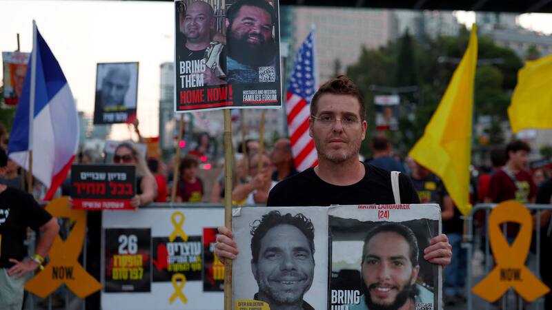 “Seguimos atrapados en el 7 de octubre de 2023, en un día interminable de terror, miedo, ira y desesperación”, dijo a Reuters Yuval Baron, cuyo suegro Keith Siegel está en manos de Hamas, en Gaza. Junto a él, familiares mostraban pancartas de sus seres queridos y guardaban un minuto de silencio por los muertos de la guerra.