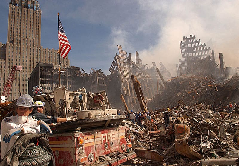 Se acaba de declarar una guerra, un nuevo tipo de guerra. Esa tarde, mientras el humo de los escombros y un persistente olor a carne quemada que duraría por días cubrían el sur de la isla, miles de neoyorquinos caminaban como zombies hacia el norte o cruzaban los puentes hacia Brooklyn. A las 17.20 el último de los edificios colapsó, el WTC 7, que había comenzado a incendiarse con los escombros incandescentes de sus hermanas mayores.