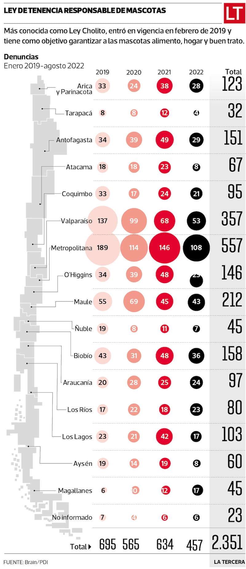Por lo mismo, en los últimos meses ha crecido el abandono o el maltrato, considerando también este último fenómeno como la tenencia irresponsable, la mala alimentación o la violencia que termina en una denuncia y en la separación de la mascota de su tutor (ver infografía).