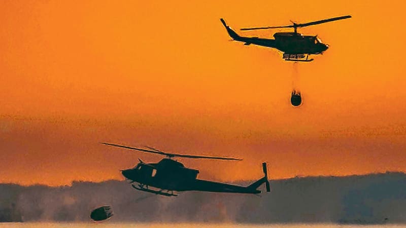 Lo primero que hacemos al llegar al incendio es reconocer la zona y mojar el área donde corran peligro las casas, porque es nuestra prioridad, junto a los bosques nativos. Luego buscamos una fuente de agua y en una hora de vuelo realizamos entre 15 y 20 descargas de bamby bucket, la canasta que cuelga del helicóptero y que carga 1.200 litros.