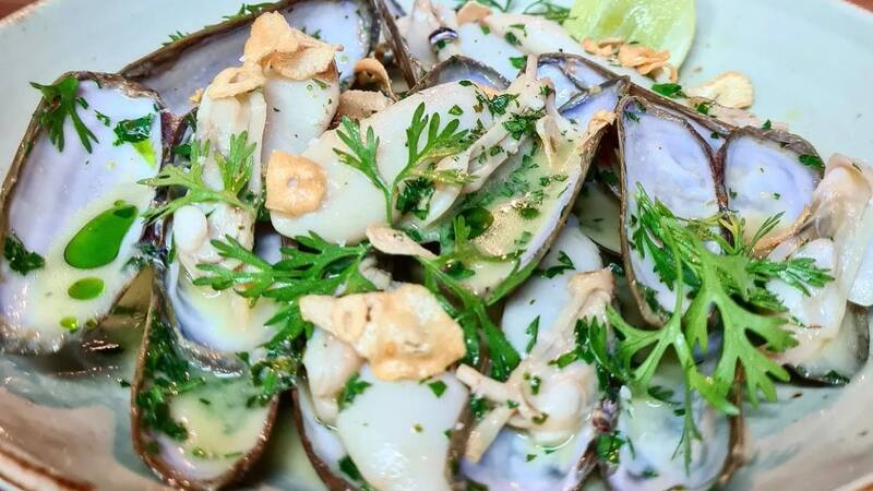 Las opciones de plato de fondo eran un Chao Farci con salsa de queso y un guiso de locos con huevo frito y encurtidos. Como soy alérgico a los locos, opté por el primer plato, el que llegó rápidamente y consistía en un rollo de repollo cocinado pero aún al dente y relleno con arroz y algunas verduritas más un huevo duro de codorniz. Todo muy suave en textura y sabor, pero que se potenciaba muy bien con una base de salsa de queso que se notaba llevaba más de una variedad y que tenía su personalidad. Una vez más, un plato en que la mezcla estuvo perfecta.