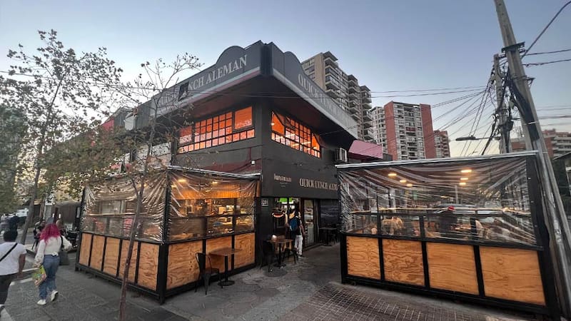 Justamente en esta última arteria es que se ubica el Quick Lunch Alemán desde los años setenta y donde paré a comer algo hace algunos días. Acompañado de mi hijo -aún de vacaciones- nos ubicamos en una de sus terrazas exteriores, afortunadamente, muy bien calefaccionada. Para pedir fuimos por lo clásico que se consume en una fuente de soda: un Barros Luco ($8.950), una vienesa dinámica ($5.790), una bebida ($2.490) y un schop de medio litro ($4190). Todo llegó bastante rápido y lo primero que hice fue pedirle un pedacito de Barros Luco a mi hijo para ver qué tal. Se trataba de un sándwich grandote, con un pan frica que aunque se quebraba un poco al cortarlo o mascarlo aguantaba bien sus ingredientes. Tenía bastante queso y carne, esta última cortada en tiras bien bien finas. A la vista se veía seca pero la verdad es que estaba muy bien. Y según mi hijo -un experto en Barros Luco- la carne picada así de fina se mezcla mejor con el queso fundido y al final sabe mejor. Y tiene razón. ¿La vienesa dinámica? De dimensiones fuera de lo habitual, me atrevería a afirmar que debe andar por los trescientos gramos de peso. Pan grande y esponjoso, lo mismo con la salchicha -bien dorada, tal como se pidió- y con una buena cantidad de palta, tomate, salsa americana, chucrut y mayonesa. Con una raya de mostaza y otra de ají la verdad es que me obligó a hacer un poco de equilibrio, pero me lo zampé como se debe. Es decir, sin que vuelva al plato. Simplemente delicioso, de los mejores que he comido en el último tiempo.