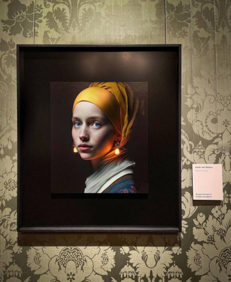 El escándalo se repitió de cierto modo en 2023 en los Países Bajos. El museo Mauritshuis de La Haya cedió en préstamo al Rijksmuseum de Amsterdam una de sus obras más valiosas, La joven de la perla, de Vermeer. En su reemplazo convocó a un concurso para una exposición sobre versiones de la pintura (@mygirlwithapearl). Recibió 3.500 imágenes, y seleccionó 170, entre ellas una joven con dos perlas (la de Vermeer solo tiene una) y pecas en el rostro, hecha en Midjourney por el artista Julian van Dieken. Y causó controversia.