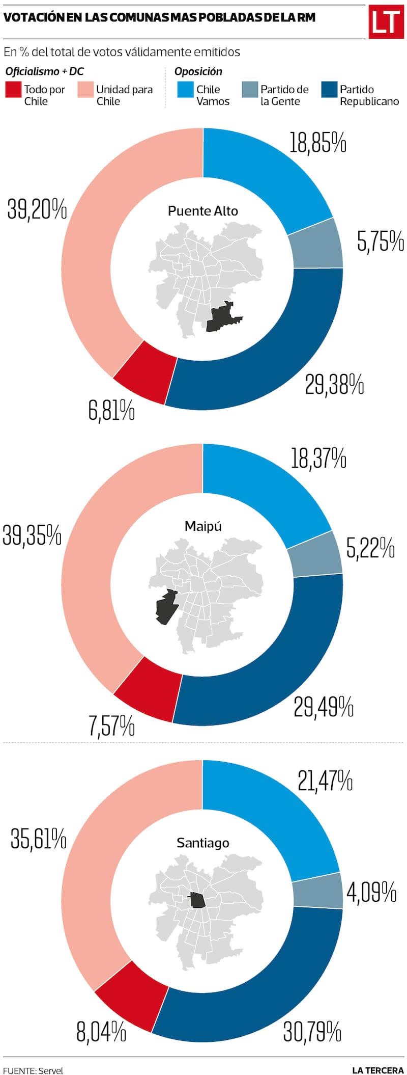 La arremetida del Partido Republicano en las elecciones del 7-M dio vuelta el tablero electoral en algunas de las comunas más pobladas de la Región Metropolitana. Si el 87% de los vecinos de Pudahuel respaldó a candidatos de izquierda en las municipales de 2021, hoy el 56% se inclinó por los rostros de la oposición. Un escenario similar se vivió en Peñalolén y San Bernardo.
