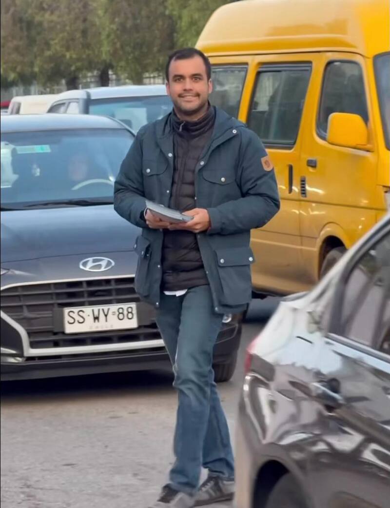 El ingeniero civil, quien se desempeña como encargado de la dirección de desarrollo comunitario de Peñalolén, solicitó un permiso sin goce de sueldo para llevar a cabo su campaña. Como parte de su despliegue, publicó un video en redes sociales en que recorre la comuna junto a la jefa comunal. Además, ha instalado “palomas” que incluyen la imagen de ella y de Claudio Orrego.