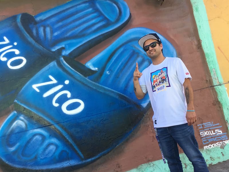 “Un día dije, aparecen chalas Nike y Adidas, pero las Zico son más transversales y me llevaban a mi niñez cuando mi abuela siempre me las regalaba tras comprarlas en la ferias”, comenta Bórquez, cuyo mural llegó a ojos de la cuenta en Instagram @Zicosandals dedicados a promocionar este producto y que cuenta con casi 35 mil seguidores en Facebook y más de 19 mil en Instagram. Por ello, nombraron a Bórquez como uno de sus embajadores.