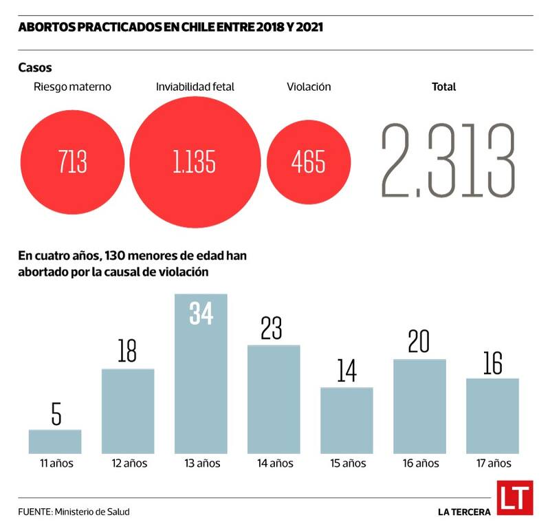 En ese contexto, durante los últimos cuatro años un total de 155 niñas y jóvenes abortaron antes de alcanzar la mayoría de edad. De ellas, 130 por la causal de violación (ver infografía).