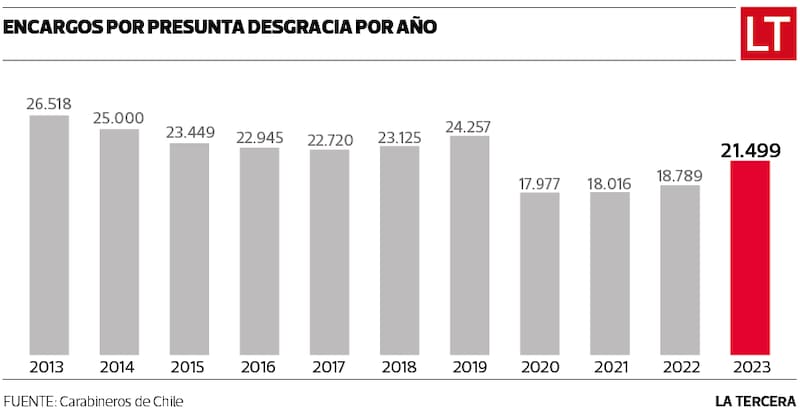 Para graficar, de los 21.499 encargos por presunta desgracia registrados por Carabineros en 2023, el 52% eran menores de 18 años.
