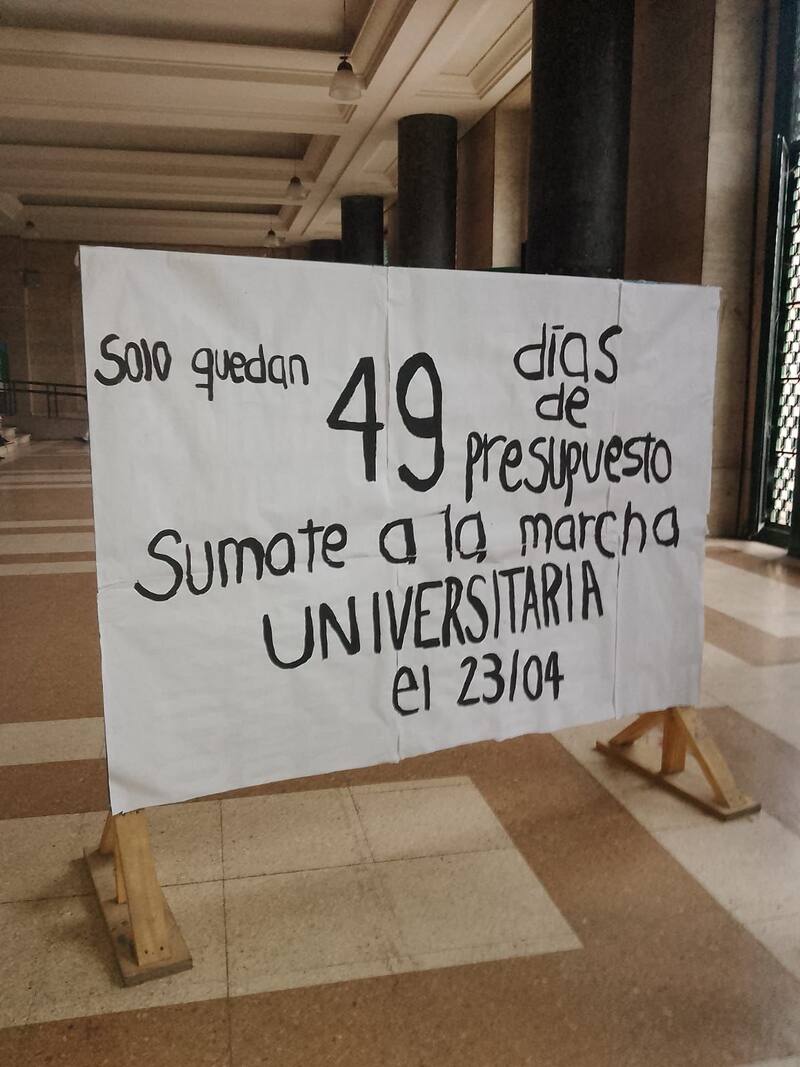 Este estudiante, de hecho, dice que ha vivido de primera mano las medidas de Milei: “La verdad es impactante lo del recorte de presupuesto. Por el recorte en la facultad muchas de las luces están apagadas y tengo entendido que es porque no se pueden permitir pagar una factura de luz de ese nivel”, grafica, antes de añadir que existen avisos en los ascensores de su facultad en los que se indica que solo deben usarse en caso de que lo necesite una persona con movilidad reducida, aun cuando el edificio cuenta con 16 pisos, por lo que entiende que esto no se cumpla del todo. “No sé hasta qué punto es verdad, pero dentro de la misma facultad hay un cartel escrito en una lona que dice que solo quedan 49 días de presupuesto. Es preocupante porque no sé qué pasará en caso de que no se amplíe”, señala.