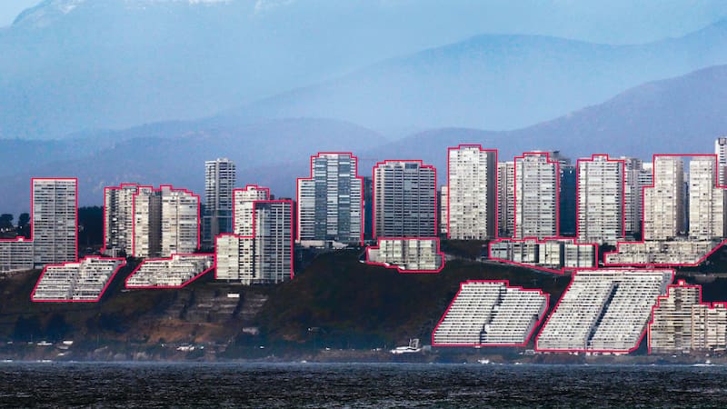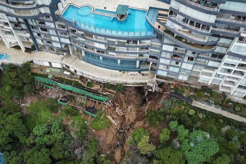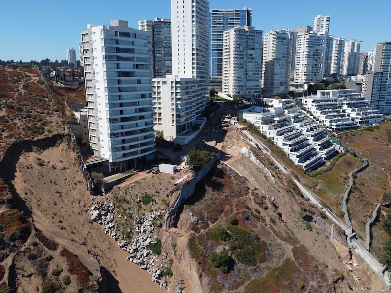 La Tercera estableció un catastro de casi 30 edificios que podrían correr riesgo, detallando la inmobiliaria a cargo de su construcción, así como cuántos pisos contemplan y en qué año tuvieron el permiso de edificación. Aunque desde el municipio de Viña del Mar aseveran que la mayoría de tales edificaciones hoy son usadas como segunda vivienda o de recreación para las familias que allí se hospedan, la alcaldesa Macarena Ripamonti (RD) ha llamado a la precaución para evitar desastres. “Cada año las lluvias van a ser más agresivas, y eso va generar colapsos en todos lados”, dice.