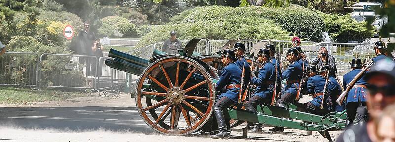 Para concluir los honores, un funcionario del Regimiento “Granaderos” tocó un toque de “silencio”, terminando el funeral de Estado con el disparo de tres salvas de los cañones Krupp de la Batería de Artillería Histórica del Ejército.