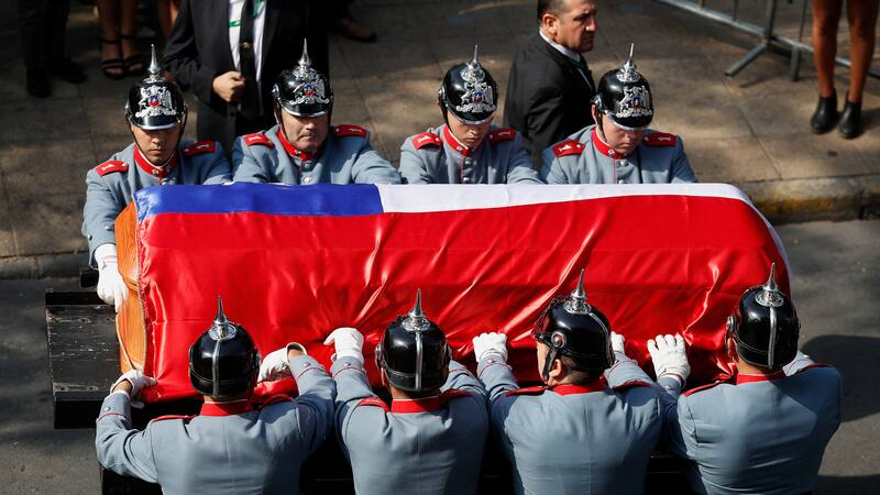 El féretro del exmandatario fue cargado y escoltado por más de 70 militares del Regimiento Escolta Presidencial N°1 “Granaderos” en todo momento. Esta repartición del Ejército es la que acompaña a los presidentes en los actos oficiales, como el tedeum, cuentas públicas y la Parada Militar.