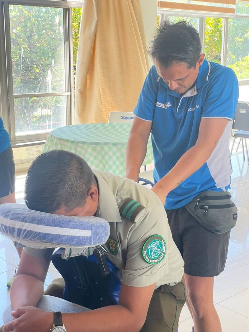 “No puedo dejar de sentir compasión con las víctimas y sus familias, y por la pérdida de Viña. He estado 15 años en esta comisaría y es la primera vez que veo un desastre tan grande”, le dijo un coronel a Arnaldo Canales en una de las visitas. Al recibir los masajes, en un espacio de desahogo, muchos expresaron su tristeza por la situación. “Lo mismo pasa con bomberos”, asegura Canales.