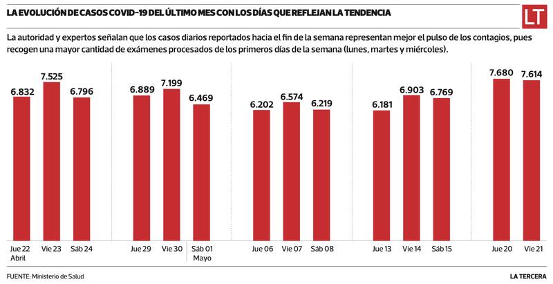 Por segunda jornada consecutiva, el Ministerio de Salud reportó más de siete mil nuevos casos Covid-19. El jueves, por primera vez desde el 30 de abril, se reportaron 7.680 contagios, y hoy, la cifra se mantuvo en 7.614.