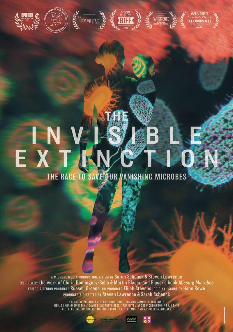 Las investigaciones de Martin Blaser y Gloria Dominguez-Bello -que luego se convertirían en pareja- son objeto de un fascinante documental estrenado en plataformas de streaming hace un par de meses en el hemisferio norte, y que el domingo 23 de abril será exhibido en el Festival Puerto de Ideas Antofagasta. Se llama “The Invisible Extinction” (“La extinción invisible”) y presenta además una serie de investigaciones y pruebas clínicas con las que un puñado de científicos busca demostrar causalidad entre de la pérdida de la diversidad microbiótica y otras patologías o condiciones más presentes hoy en día, incluyendo el trastorno autista, y buscar posibles terapias en base a esto. También muestra el esfuerzo de Gloria Dominguez-Bello y otros investigadores de todo el mundo para crear un banco mundial de microbioma para preservar las muestras recolectadas con la esperanza de que puedan ser utilizadas en el desarrollo de terapias en el futuro.