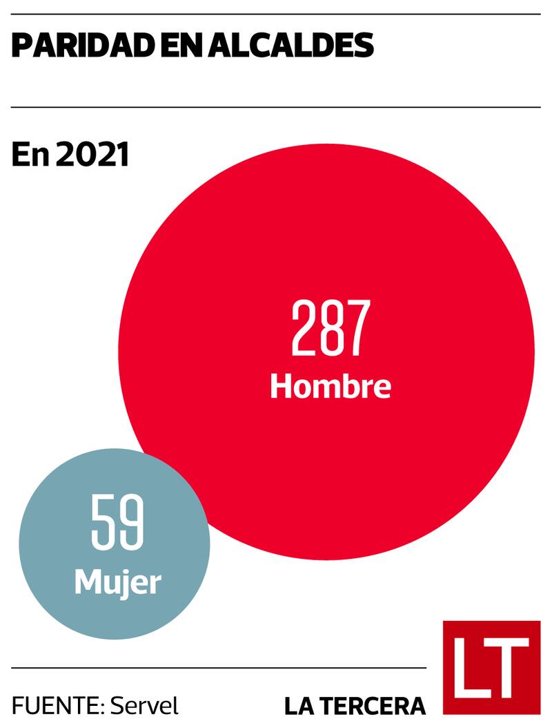Ello queda de manifiesto en los números. Entre los 346 ganadores de las elecciones a alcaldes de 2021 un total de 287 fueron hombres (82,9%), mientras que sólo 59 fueron mujeres (17,1%). De todas maneras, el resultado de 2021 fue distinto de lo que ocurrió en la misma elección de 2016, donde 304 de los vencedores fueron hombres (88,1%) y 41 fueron mujeres (11,8%).