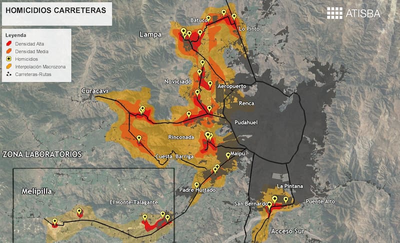 Esto se evidencia en un mapeo de algunos homicidios en la zona: en diciembre pasado, en Talagante apareció un cuerpo al costado de una autopista. Estaba amarrado con cables y envuelto en una frazada. En enero de este año, en Pudahuel apareció un apuñalado que tenía un disparo en una mano. En San Bernardo, el mismo mes, encontraron dos cadáveres con extremidades atadas.