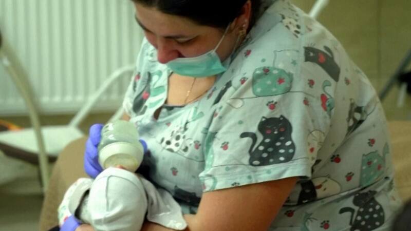 La enfermera ucraniana Oksana Martynenko y sus colegas tienen que atender a los recién nacidos en una clínica improvisada en un sótano residencial de las afueras de Kiev, todos ellos de vientres de alquiler cuyos padres no pueden venir a recogerlos a causa de la guerra.