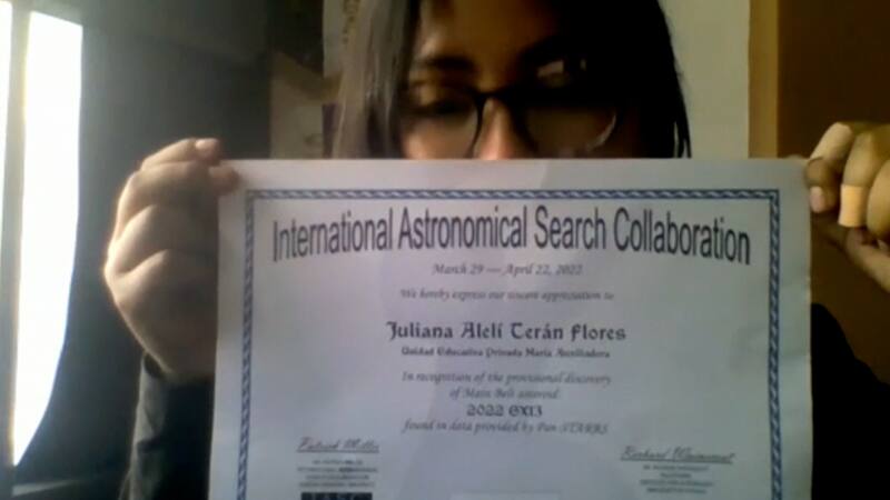 Juliana Terán, una adolescente boliviana, realizó el hallazgo de un nuevo asteroide que fue llamado 2022 GX13, recibiendo un certificado que confirma su autoría.