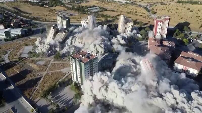 Así fue el momento en el que se demolieron 9 edificios de manera simultánea en Turquía