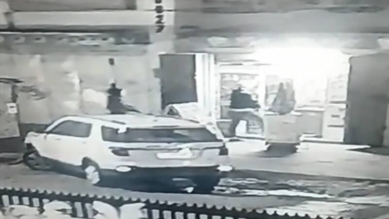 El atraco registrado por una cámara de seguridad, fue realizado por dos delincuentes, de los cuales uno recibió un disparo en la cabeza y se encuentra en riesgo vital en el Hospital Barros Luco.