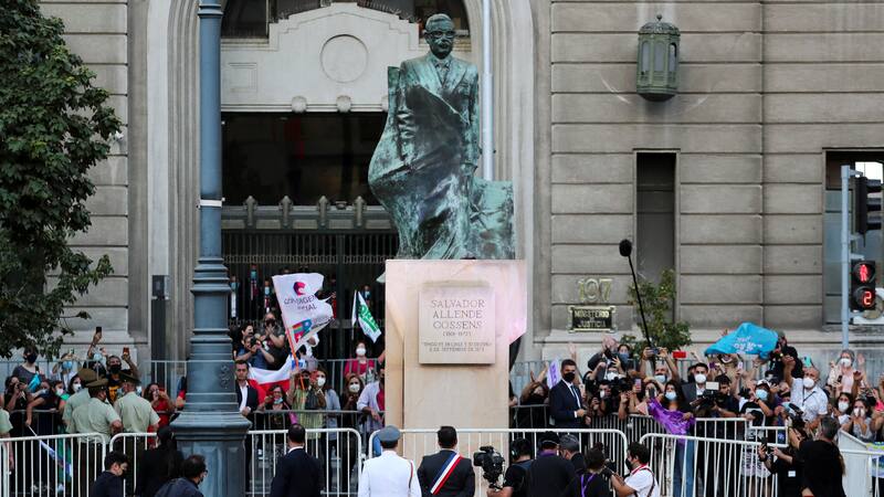 Rompiendo todo protocolo el Presidente se acercó a la estatua antes de hacer ingreso al Palacio de La Moneda y recibir los primeros honores. Gabriel Boric se acercó unos segundos y rindió un pequeño homenaje a la figura del expresidente.