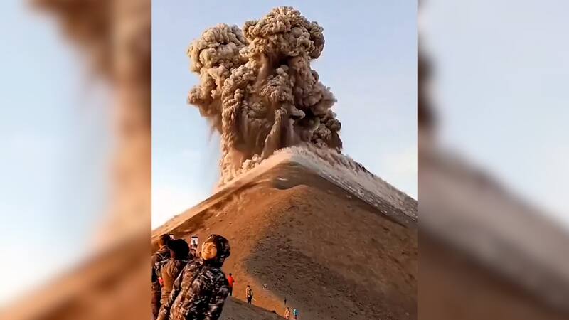 Tras varios días de actividad irregular, el cráter finalmente hizo erupción, generando una inmensa columna de cenizas.